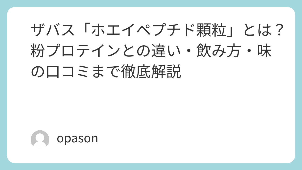 「ザバス プロ パワーペプチド顆粒 レモン風味 5.2g×12袋」(https://www.amazon.co.jp/s?k=%E3%82%B6%E3%83%90%E3%82%B9%20%E3%83%97%E3%83%AD%20%E3%83%91%E3%83%AF%E3%83%BC%E3%83%9A%E3%83%97%E3%83%81%E3%83%89%E9%A1%86%E7%B2%92%20%E3%83%AC%E3%83%A2%E3%83%B3%E9%A2%A8%E5%91%B3%205.2g%C3%9712%E8%A2%8B&tag=opason-22)は、粉の「ザバス ホエイプロテイン100 リッチショコラ味 980g」(https://www.amazon.co.jp/s?k=%E6%98%8E%E6%B2%BB%20%E3%82%B6%E3%83%90%E3%82%B9%20%E3%83%9B%E3%82%A8%E3%82%A4%E3%83%97%E3%83%AD%E3%83%86%E3%82%A4%E3%83%B3100%20%E3%83%AA%E3%83%83%E3%83%81%E3%82%B7%E3%83%A7%E3%82%B3%E3%83%A9%E5%91%B3%20980g&tag=opason-22)みたいに「たんぱく質量をしっかり稼ぐ」用途とは別で、あくまで“タイミングを逃さないための選択肢”として見ると満足度が上がります。