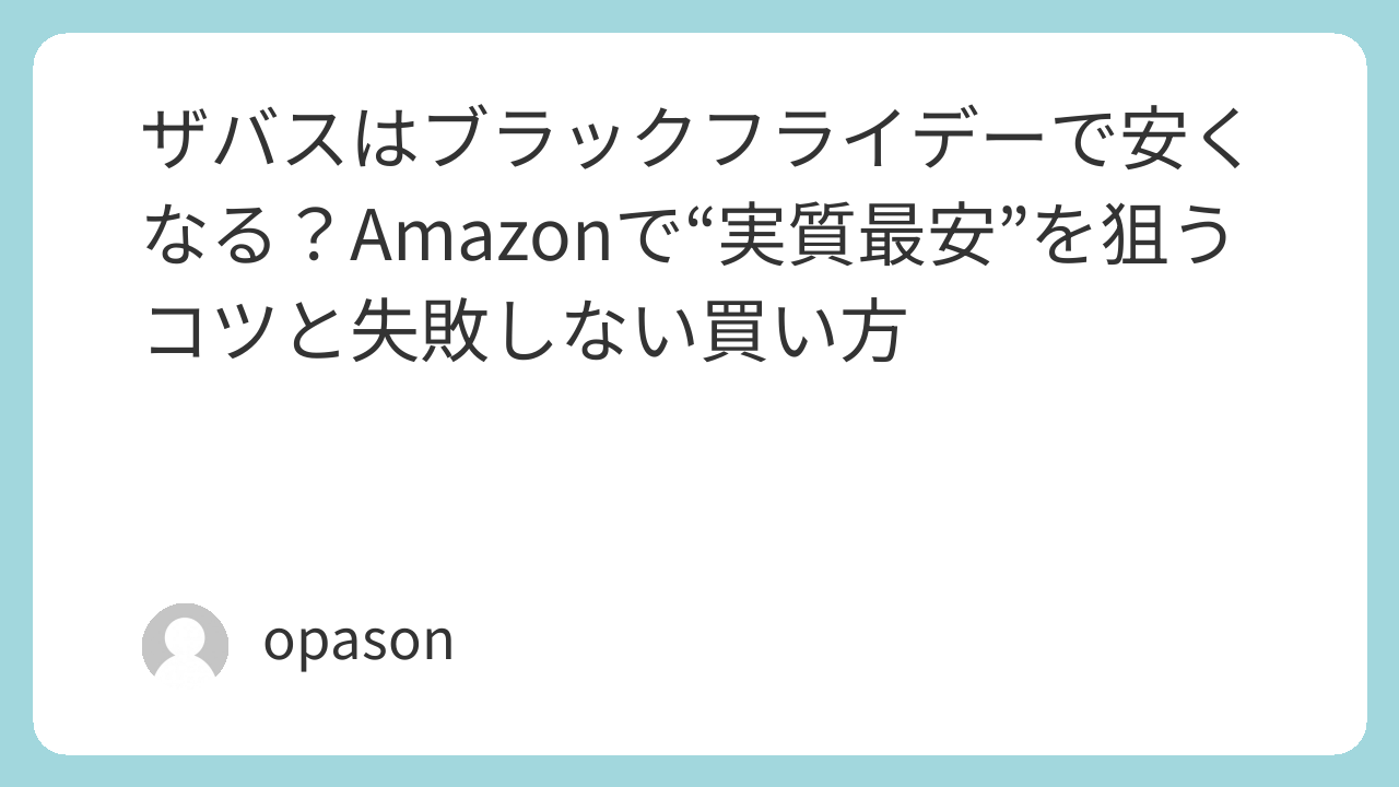 ブラックフライデーはザバスを安く買いやすいタイミングですが、得をする人は“安いから買う”ではなく、“続ける前提で買う”のが上手いです。味の当たりを取って、粉が合うなら「ザバス ホエイプロテイン100 リッチショコラ味 980g」https://www.amazon.co.jp/s?k=%E3%82%B6%E3%83%90%E3%82%B9%20%E3%83%9B%E3%82%A8%E3%82%A4%E3%83%97%E3%83%AD%E3%83%86%E3%82%A4%E3%83%B3100%20%E3%83%AA%E3%83%83%E3%83%81%E3%82%B7%E3%83%A7%E3%82%B3%E3%83%A9%E5%91%B3%20980g&tag=opason-22 や「ザバス アクア ホエイプロテイン100 グレープフルーツ風味 800g」https://www.amazon.co.jp/s?k=%E3%82%B6%E3%83%90%E3%82%B9%20%E3%82%A2%E3%82%AF%E3%82%A2%20%E3%83%9B%E3%82%A8%E3%82%A4%E3%83%97%E3%83%AD%E3%83%86%E3%82%A4%E3%83%B3100%20%E3%82%B0%E3%83%AC%E3%83%BC%E3%83%97%E3%83%95%E3%83%AB%E3%83%BC%E3%83%84%E9%A2%A8%E5%91%B3%20800g&tag=opason-22 を軸に、粉が不安なら「ザバス MILK PROTEIN 脂肪0 ミルク風味 200ml」https://www.amazon.co.jp/s?k=%E3%82%B6%E3%83%90%E3%82%B9%20MILK%20PROTEIN%20%E8%84%82%E8%82%AA0%20%E3%83%9F%E3%83%AB%E3%82%AF%E9%A2%A8%E5%91%B3%20200ml&tag=opason-22 から入る。ここだけ守ると、セールの恩恵がちゃんと体に残ります。
