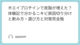 ホエイは乳由来なので、合わない人はいます。いきなり規定量をゴクゴクいくより、少量からスタートして様子を見るのが本当に大事。失敗すると「プロテイン=体に合わない」って思ってしまうので、最初だけ慎重に。