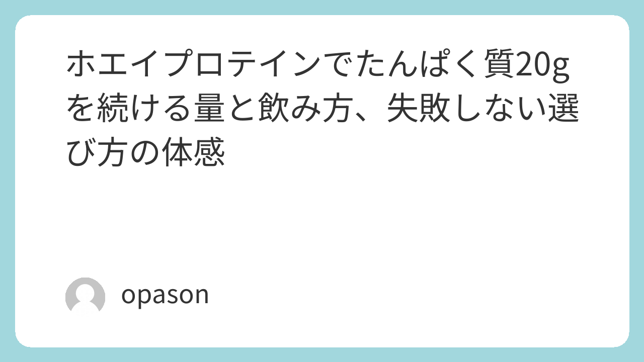 ホエイプロテインで「たんぱく質20g」を狙う人がつまずくのは、だいたい同じところです。粉の量を20gだと思い込んでいたり、味は良くても溶けにくくて面倒になったり、あるいはお腹の相性で続かなかったり。ここでは検索意図ど真ん中の「20gを毎日ラクに続ける」ために、量の考え方から、続く飲み方、製品の選び方までを、体感ベースでまとめます。