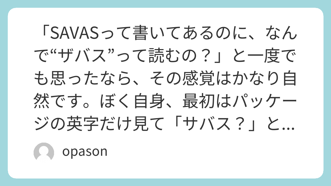 「SAVASって書いてあるのに、なんで“ザバス”って読むの?」と一度でも思ったなら、その感覚はかなり自然です。ぼく自身、最初はパッケージの英字だけ見て「サバス?」と口に出しかけて、ジムの受付で軽く恥ずかしい思いをしたことがあります。けれど、結論から言うとブランドとして正しい呼び方は「ザバス」。ここさえ押さえておけば、会話でも検索でも迷いが消えます。