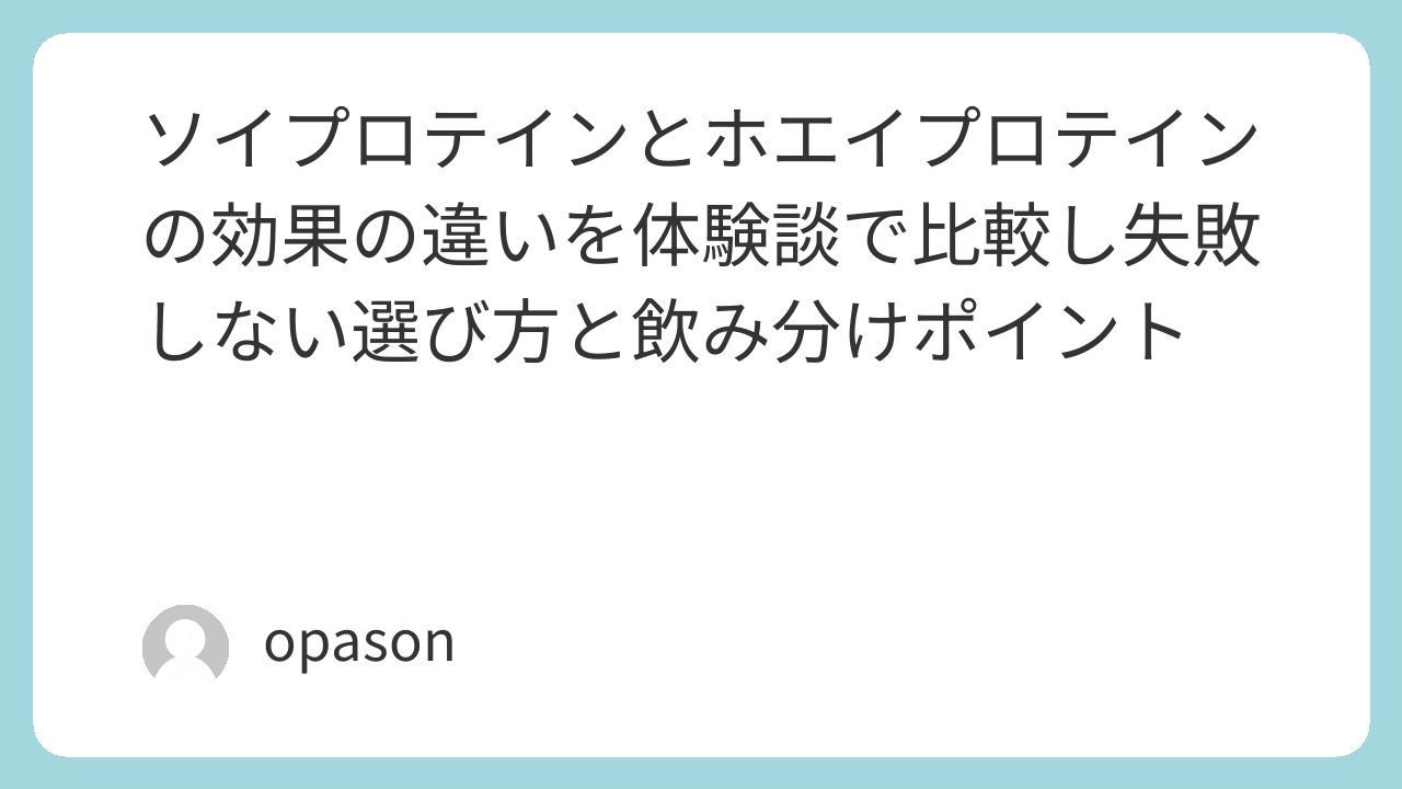 ソイプロテインとホエイプロテインは、どちらも「たんぱく質を補う」点では同じですが、検索意図で多いのは「効果の違い=飲んだときの体感の違い」と「自分に合う選び方」です。結論から言うと、筋トレ後の回復感や筋肉を増やしたい人はホエイがハマりやすく、間食置き換えや腹持ち重視の人はソイが続きやすい傾向があります。ここでは、よくある体験談ベースのリアルな違いと、失敗しない飲み分けをまとめます。