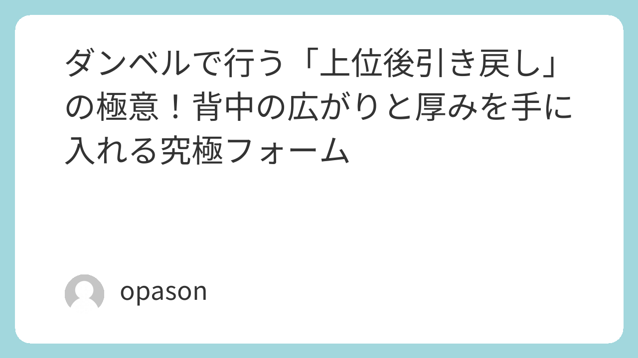 ダンベルで行う「上位後引き戻し」の極意!背中の広がりと厚みを手に入れる究極フォーム