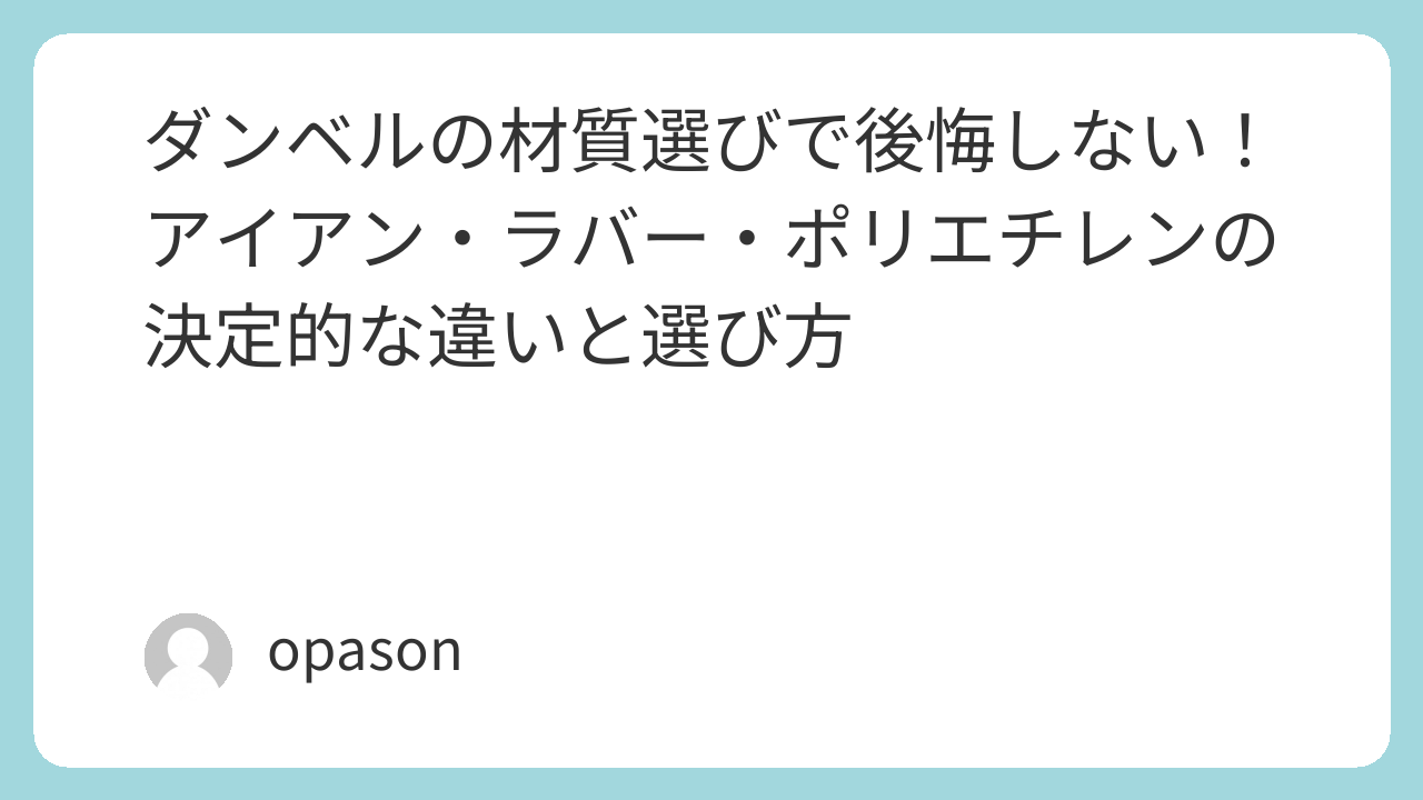 家トレを始めようと決意して、いざダンベルを探し始めると、誰もが最初にぶち当たる壁があります。それが「材質」の選択です。