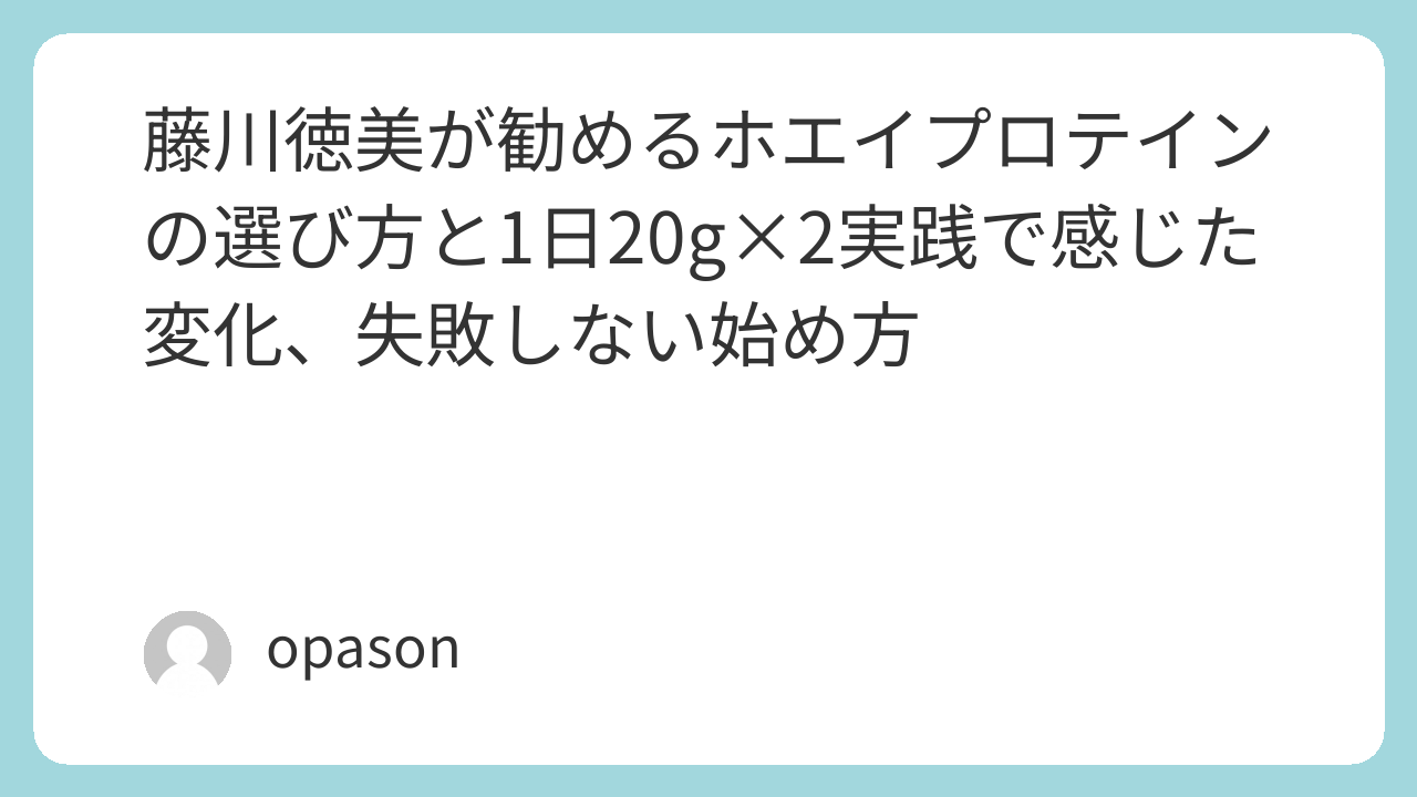 「ホエイプロテイン 藤川徳美」で検索してたどり着く結論はシンプルです。