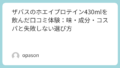 飲み方のコツは、冷やして飲むこと。キンキンに冷えていると、後味のクセがかなりマイルドになります。個人的には、運動後の“火照りが残っている状態”で飲むと、さっぱり感が増して飲みやすかったです。