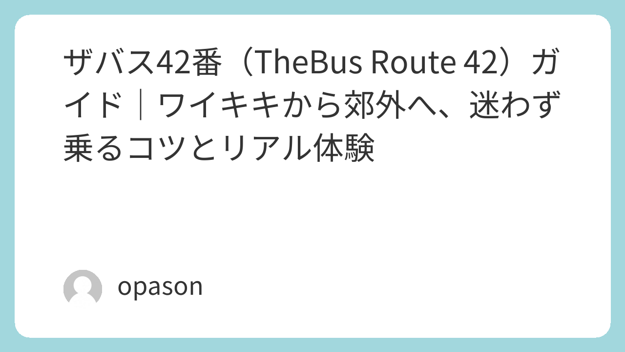 42番は、観光の王道だけを回る路線ではないぶん、うまく噛み合うと“移動が旅のストレスから解放される”路線です。最初の1回目は、行き先を欲張らず「まずは郊外側へ少し乗ってみる」「帰りはワイキキ方面に戻る」の往復で、方向感覚を作るのがおすすめ。どうしても不安なら、紙の情報もあると安心で、「ハワイ ガイドブック 2026」https://www.amazon.co.jp/s?k=%E3%83%8F%E3%83%AF%E3%82%A4+%E3%82%AC%E3%82%A4%E3%83%89%E3%83%96%E3%83%83%E3%82%AF+2026&tag=opason-22 を一冊入れておくと、“スマホが見づらい瞬間”の保険になります。海外の電源まわりも、意外と旅の質に直結するので、「海外旅行 変換プラグ ハワイ」https://www.amazon.co.jp/s?k=%E6%B5%B7%E5%A4%96%E6%97%85%E8%A1%8C+%E5%A4%89%E6%8F%9B%E3%83%97%E3%83%A9%E3%82%B0+%E3%83%8F%E3%83%AF%E3%82%A4&tag=opason-22 を用意しておくと、ホテルでの充電環境が安定して気持ちがラクです。