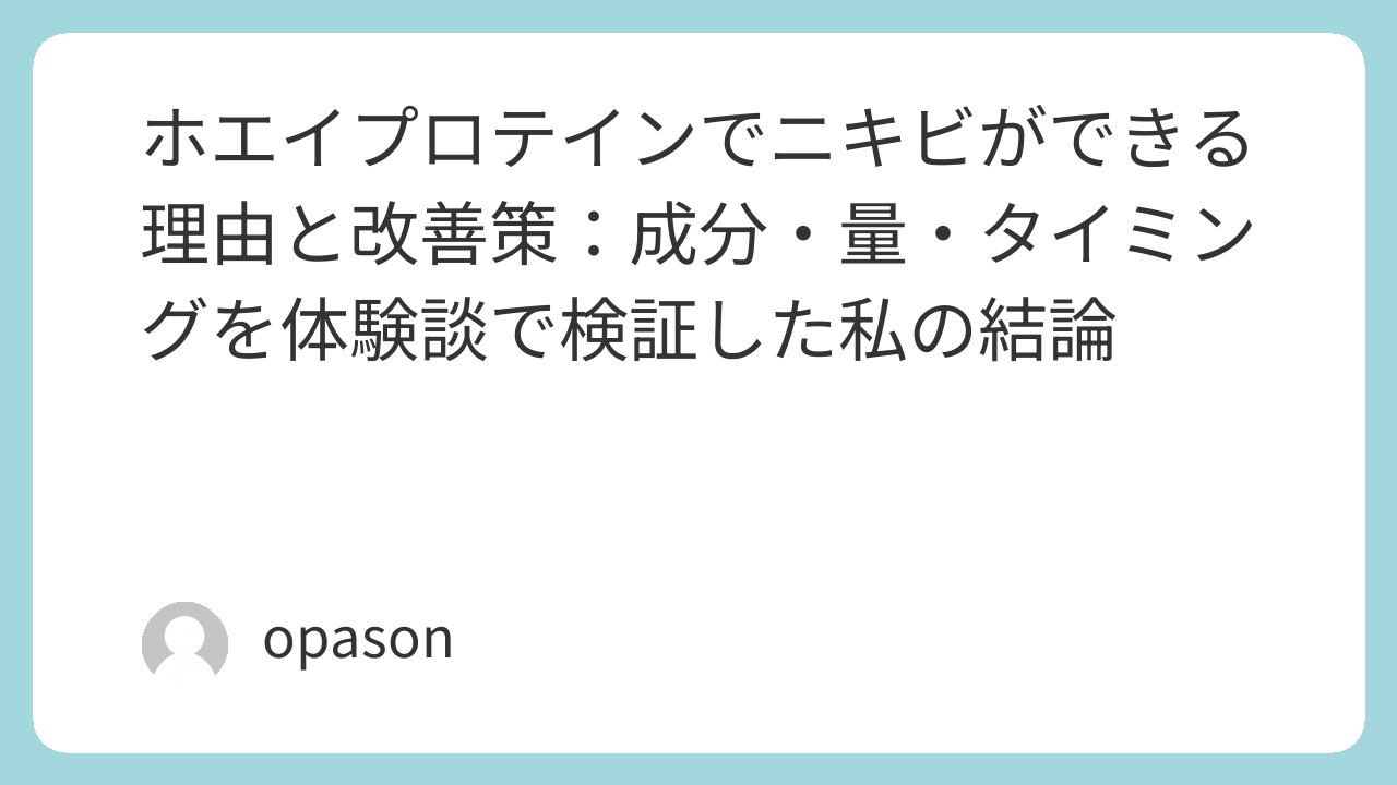 ホエイでニキビが増える…という話は、体感としても一定数あります。ただ、実際にやってみると「量」「製品の中身」「糖質セット」「汗・摩擦」「睡眠」のどれか(あるいは複数)が噛み合って悪化しているケースが多い。