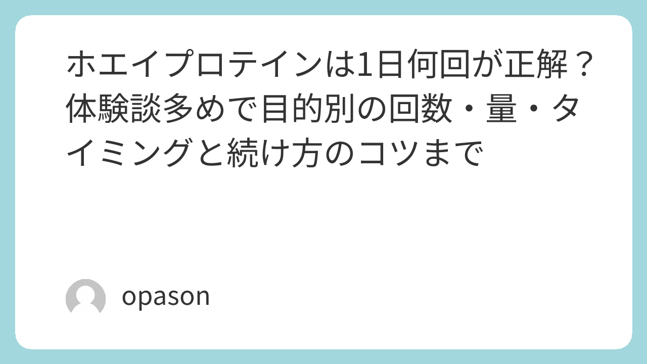 「ホエイプロテイン 1日何回?」って検索したとき、いちばん知りたいのはたぶんこれだと思います。