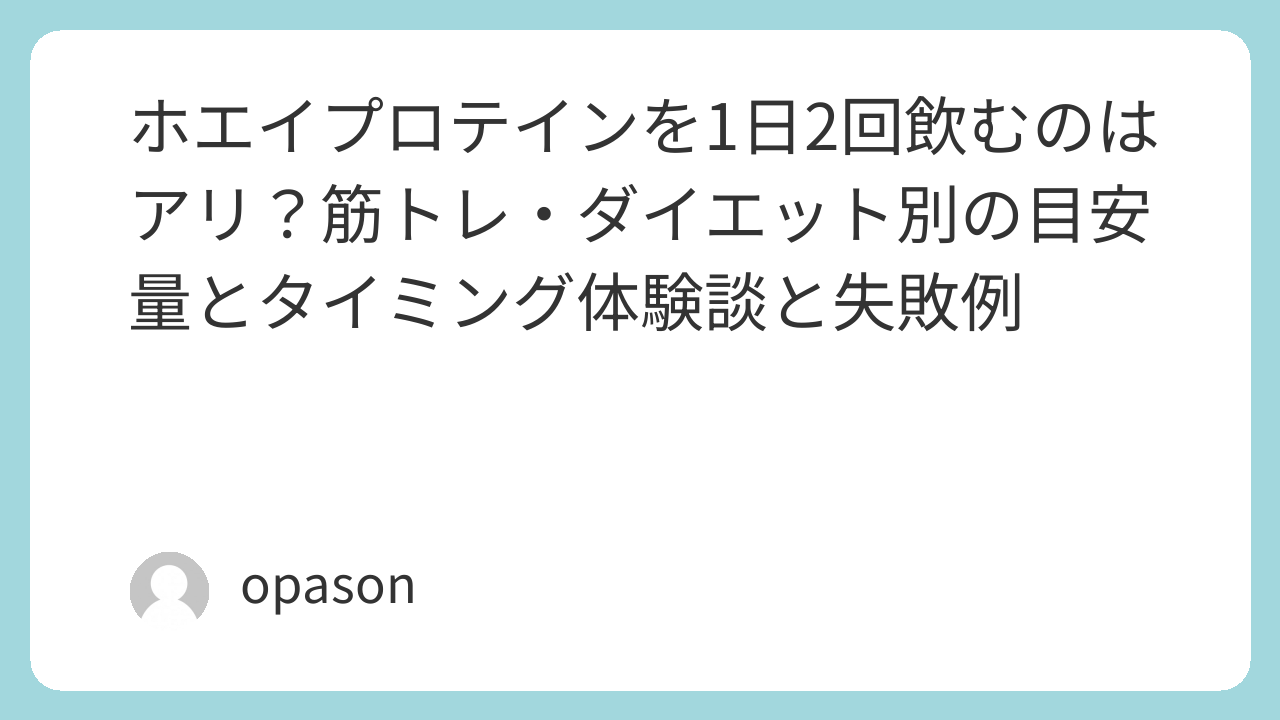 ホエイプロテインを1日2回にするのは、筋トレでもダイエットでも十分に現実的です。ポイントは、回数で頑張るよりも、総量のズレをなくして、タイミングを生活に合わせること。