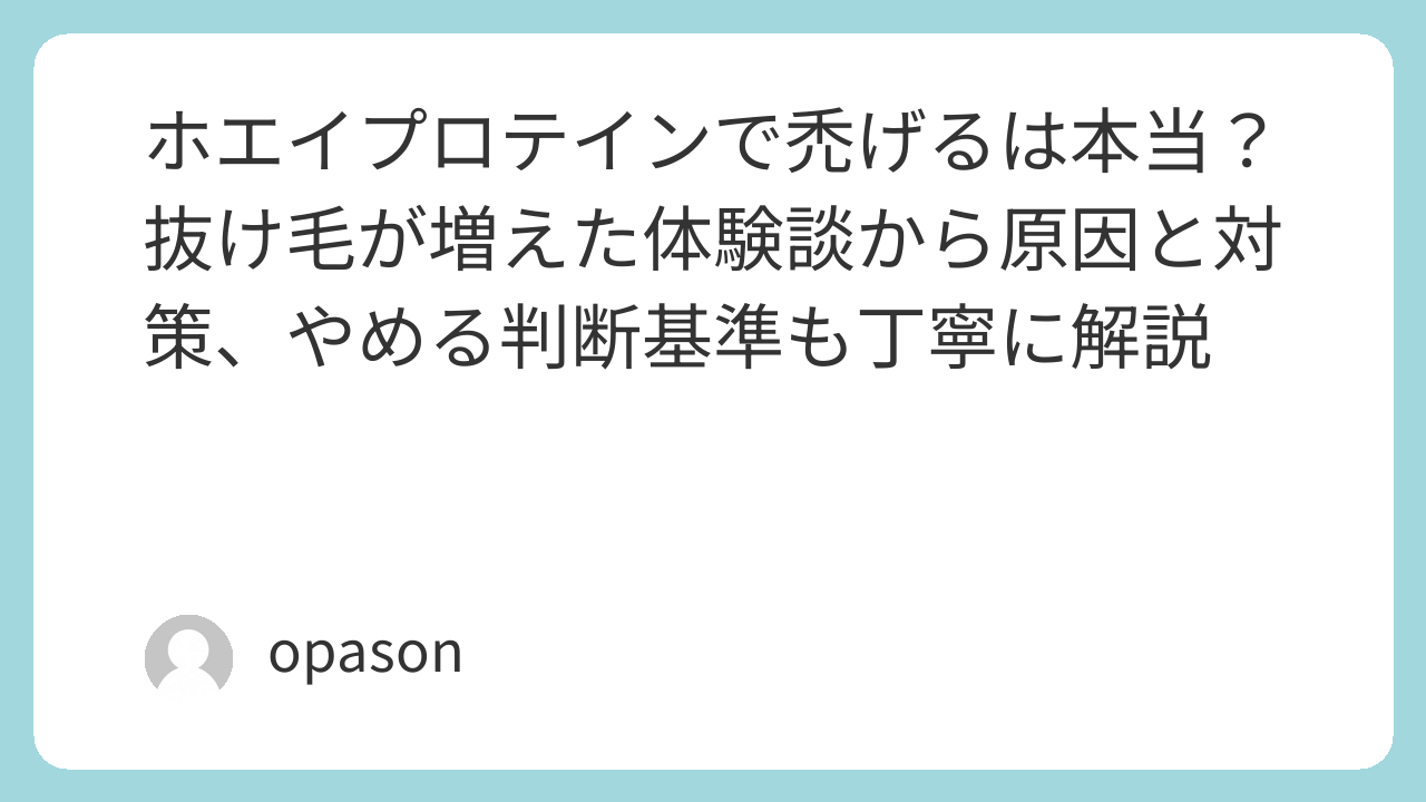 ここでは、私自身が「抜け毛が増えた気がする」時期にやった切り分け(やめる・変える・続けるの判断)を中心に、ホエイプロテインと薄毛の関係を現実的に整理します。結論から言うと、ホエイプロテインが直接“禿げ”を起こすと断定できる話ではない一方、飲み方・体質・生活の変化が重なると、抜け毛が目立って不安が増えることは起こり得る——この温度感がいちばん近いです。