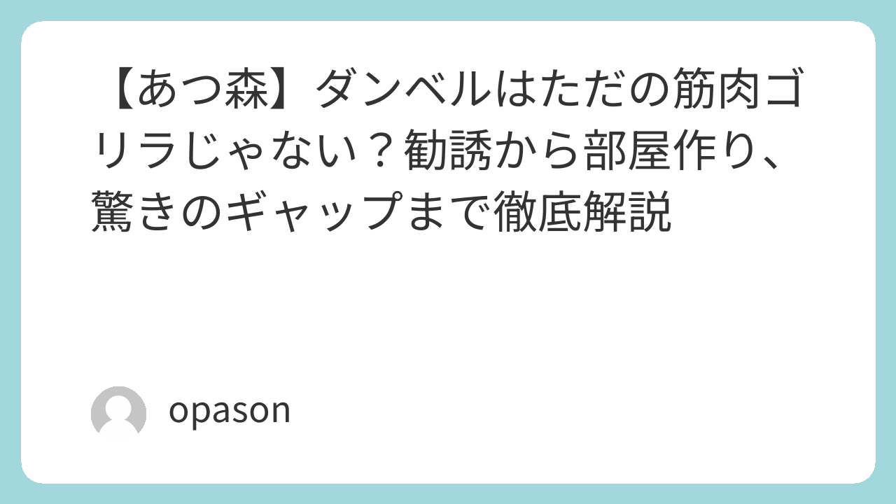 【あつ森】ダンベルはただの筋肉ゴリラじゃない?勧誘から部屋作り、驚きのギャップまで徹底解説