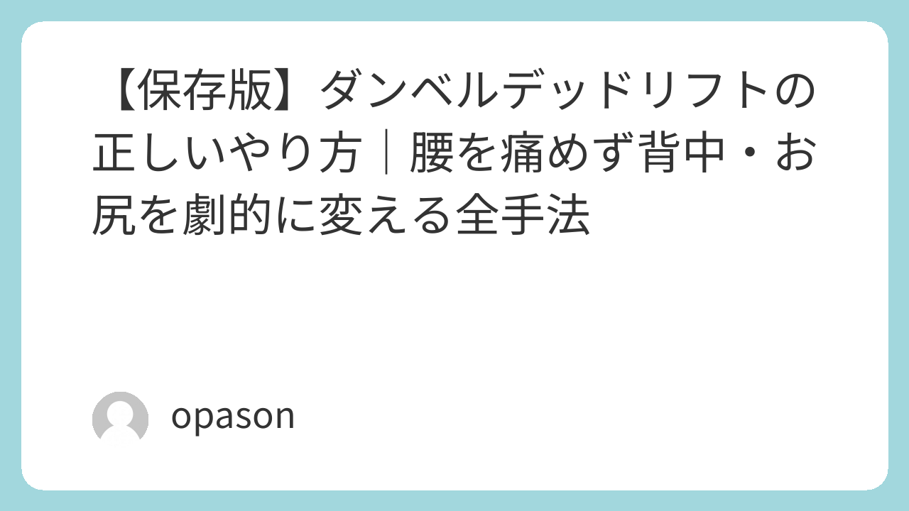 【保存版】ダンベルデッドリフトの正しいやり方|腰を痛めず背中・お尻を劇的に変える全手法