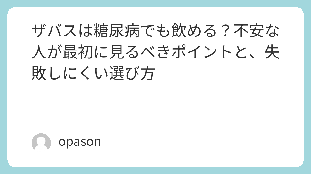 糖尿病の人がザバスを考えるとき、いちばん大事なのは「甘いかどうか」より「糖質がどれくらいで、どの量を飲むか」です。粉タイプのザバス ホエイプロテイン100(ココア味)(https://www.amazon.co.jp/s?k=%E3%82%B6%E3%83%90%E3%82%B9+%E3%83%9B%E3%82%A8%E3%82%A4%E3%83%97%E3%83%AD%E3%83%86%E3%82%A4%E3%83%B3100+%E3%82%B3%E3%82%B3%E3%82%A2%E5%91%B3&tag=opason-22 )のように調整しやすい形から入ると、後悔が減りやすいです。ドリンク派ならザバス MILK PROTEIN 脂肪0 ミルク風味 200ml(https://www.amazon.co.jp/s?k=%E3%82%B6%E3%83%90%E3%82%B9+MILK+PROTEIN+%E8%84%82%E8%82%AA0+%E3%83%9F%E3%83%AB%E3%82%AF%E9%A2%A8%E5%91%B3+200ml&tag=opason-22 )のように容量が把握しやすいものを基準にして、大容量のザバス MILK PROTEIN 脂肪0 430ml(https://www.amazon.co.jp/s?k=%E3%82%B6%E3%83%90%E3%82%B9+MILK+PROTEIN+%E8%84%82%E8%82%AA0+430ml&tag=opason-22 )は“飲み切り前提にしない”くらいがちょうどいいこともあります。さっぱり系が好みならザバス アクア ホエイプロテイン100 レモン風味(https://www.amazon.co.jp/s?k=%E3%82%B6%E3%83%90%E3%82%B9+%E3%82%A2%E3%82%AF%E3%82%A2+%E3%83%9B%E3%82%A8%E3%82%A4%E3%83%97%E3%83%AD%E3%83%86%E3%82%A4%E3%83%B3100+%E3%83%AC%E3%83%A2%E3%83%B3%E9%A2%A8%E5%91%B3&tag=opason-22 )、体質面で不安があるならザバス ソイプロテイン100(https://www.amazon.co.jp/s?k=%E3%82%B6%E3%83%90%E3%82%B9+%E3%82%BD%E3%82%A4%E3%83%97%E3%83%AD%E3%83%86%E3%82%A4%E3%83%B3100&tag=opason-22 )というふうに、目的と不安に合わせて候補を置くと整理しやすくなります。