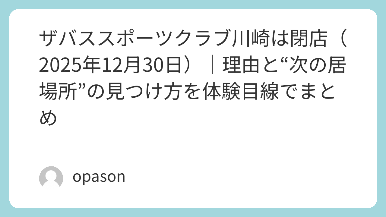 ザバススポーツクラブ川崎は閉店(2025年12月30日)|理由と“次の居場所”の見つけ方を体験目線でまとめ