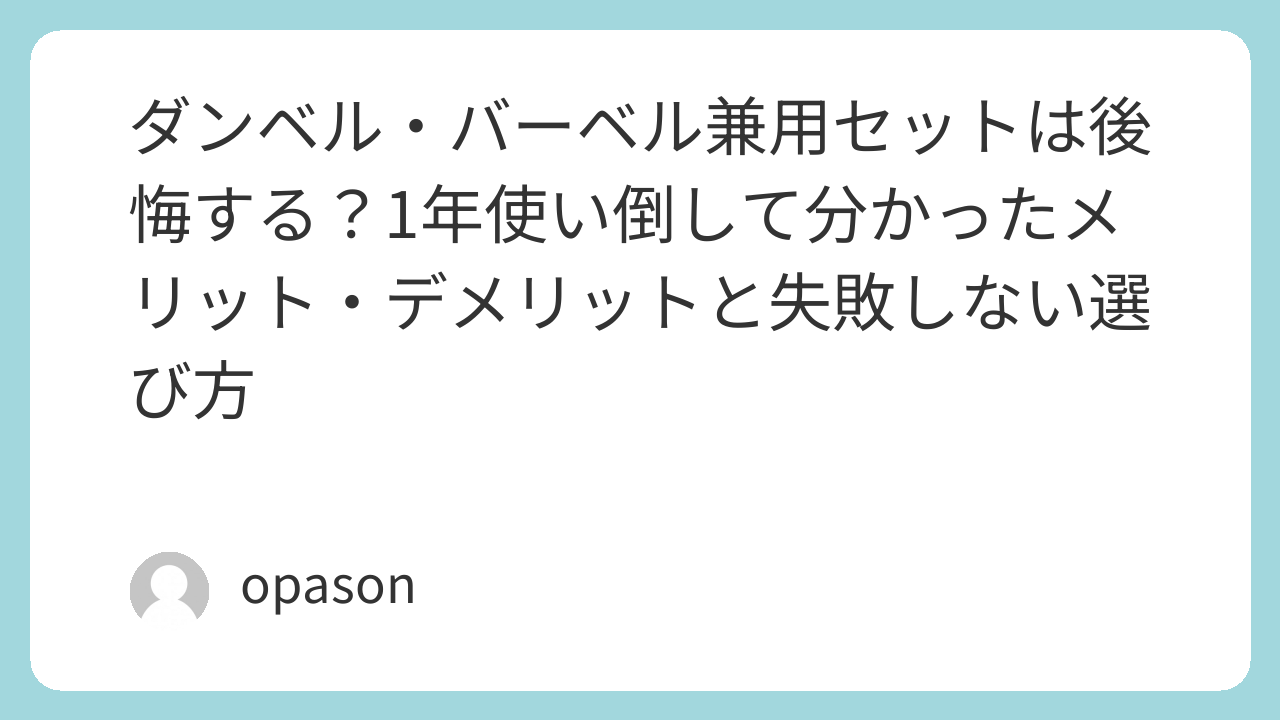 - アイアン製: コンパクトで高重量まで対応できますが、床に置く際の音が大きいため、Wout バーベルにもなるダンベルのようなラバー付きのものを選ぶのが鉄則です。