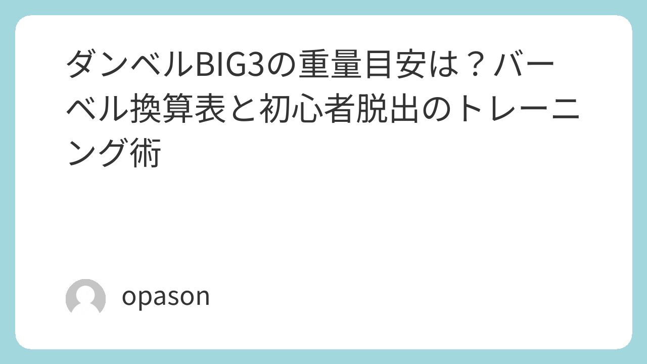 ダンベルBIG3の重量目安は?バーベル換算表と初心者脱出のトレーニング術