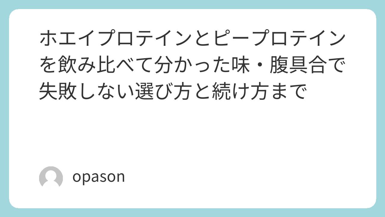 例:まずは国内で入手しやすい ザバス(SAVAS) ホエイプロテイン100 から試す人が多いです。 - 乳製品が合わない/お腹が弱い/植物性でまとめたい → ピープロテイン寄り