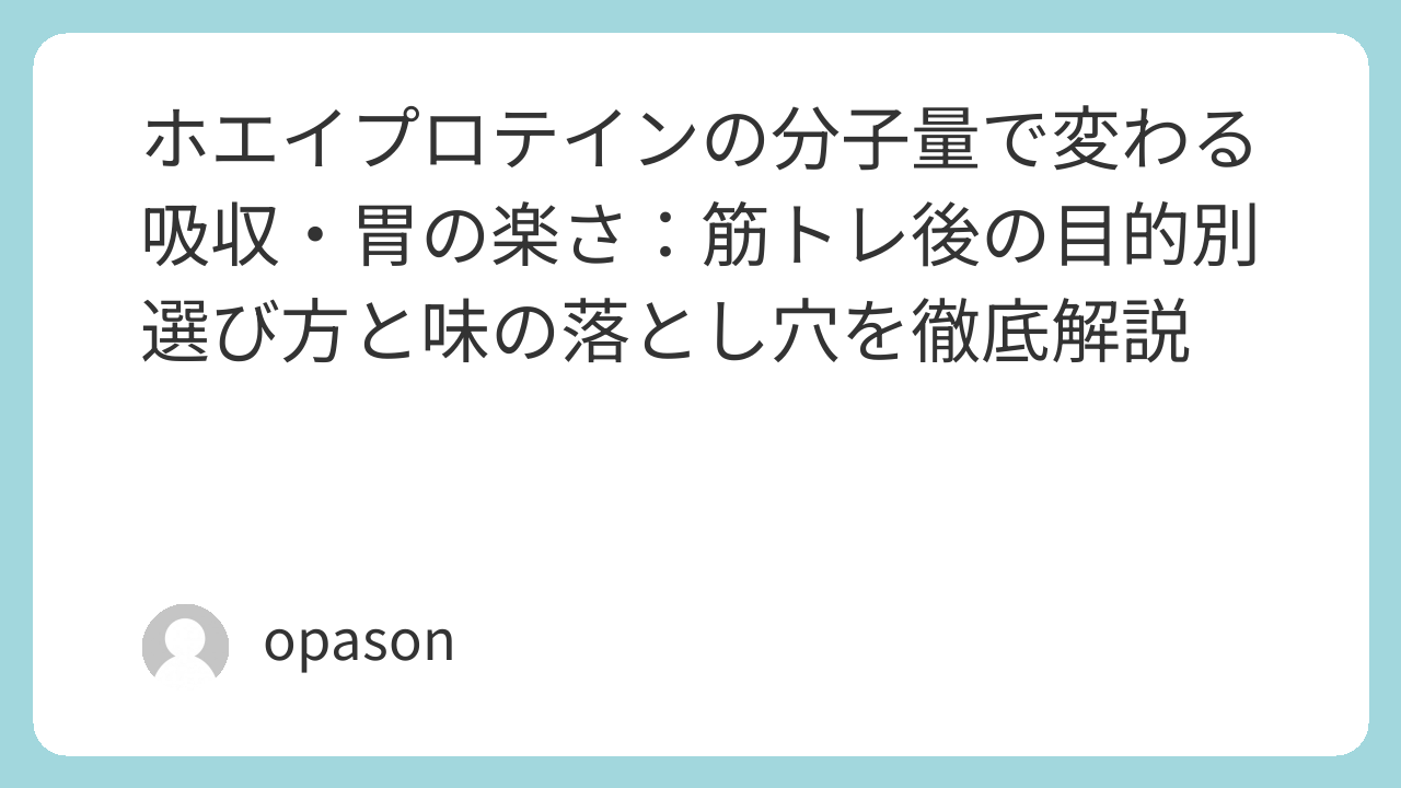 ただし、ここで大事なのは「分子量=筋肉がつく魔法の指標」ではないこと。筋肥大を決める主役は、トータルのタンパク質量、継続、トレーニング、睡眠です。分子量が効くのは、どちらかというと飲んだ後のラクさと続けやすさ。続けられる人が結果的に強い、という現実があります。