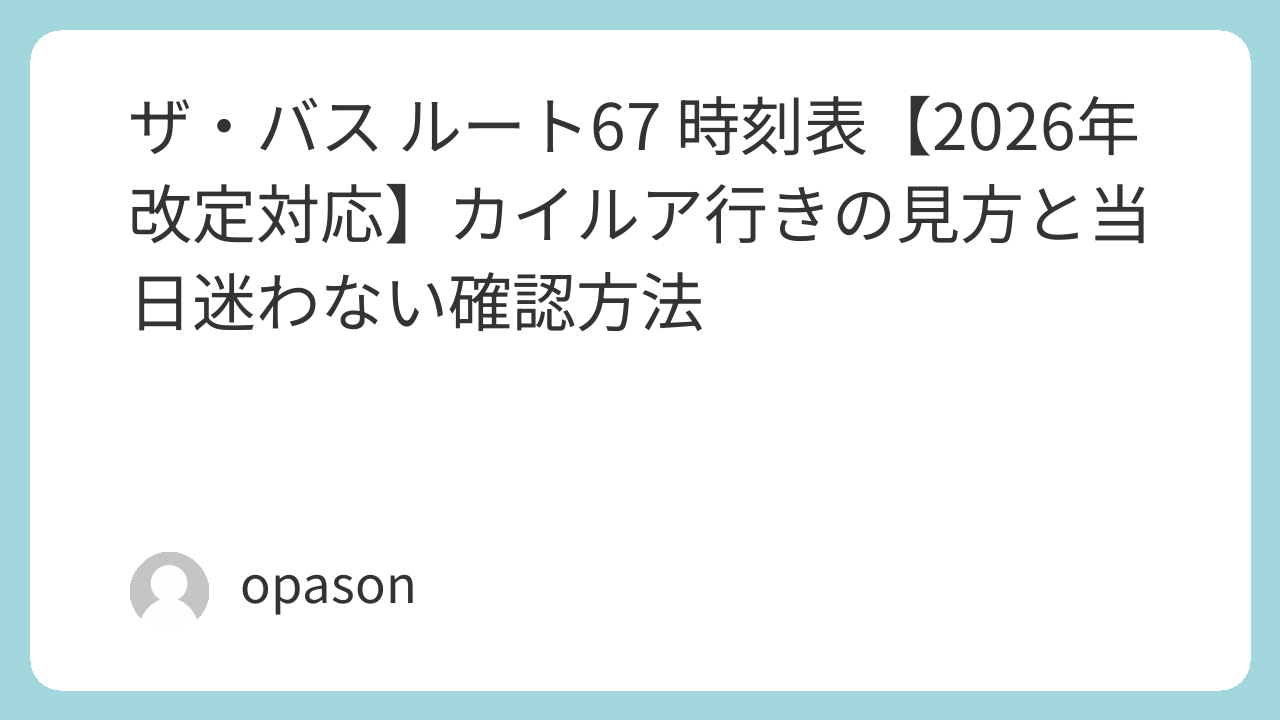 最後に、時刻表検索でたどり着いた人へ一番伝えたいのは、ルート67は“むずかしい路線”ではないということです。むしろ、迷いの原因は「時刻表の古さ」と「向きの取り違え」と「遅れの不安」の三つに集約されます。公式ページでEffective日付を確認し、行先表示を一呼吸おいて読み、当日はDaBus2Googleマップで到着見込みを見ながら動く。この流れだけで、初めてでもだいぶ快適になります。私のように、海沿いへ吸い込まれて“景色は最高、心は焦る”を味わわないためにも、時刻表は数字の前に「最新版」と「向き」を押さえる。これが、ルート67を気持ちよく使いこなす近道です。