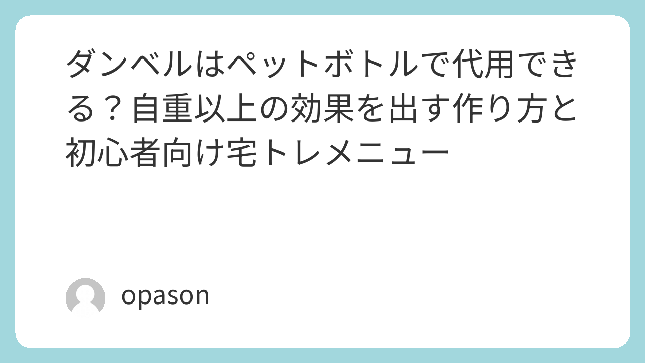 - さらなる負荷: 5kg以上の負荷が必要になった時、ペットボトルではサイズが大きくなりすぎて動きを邪魔してしまいます。