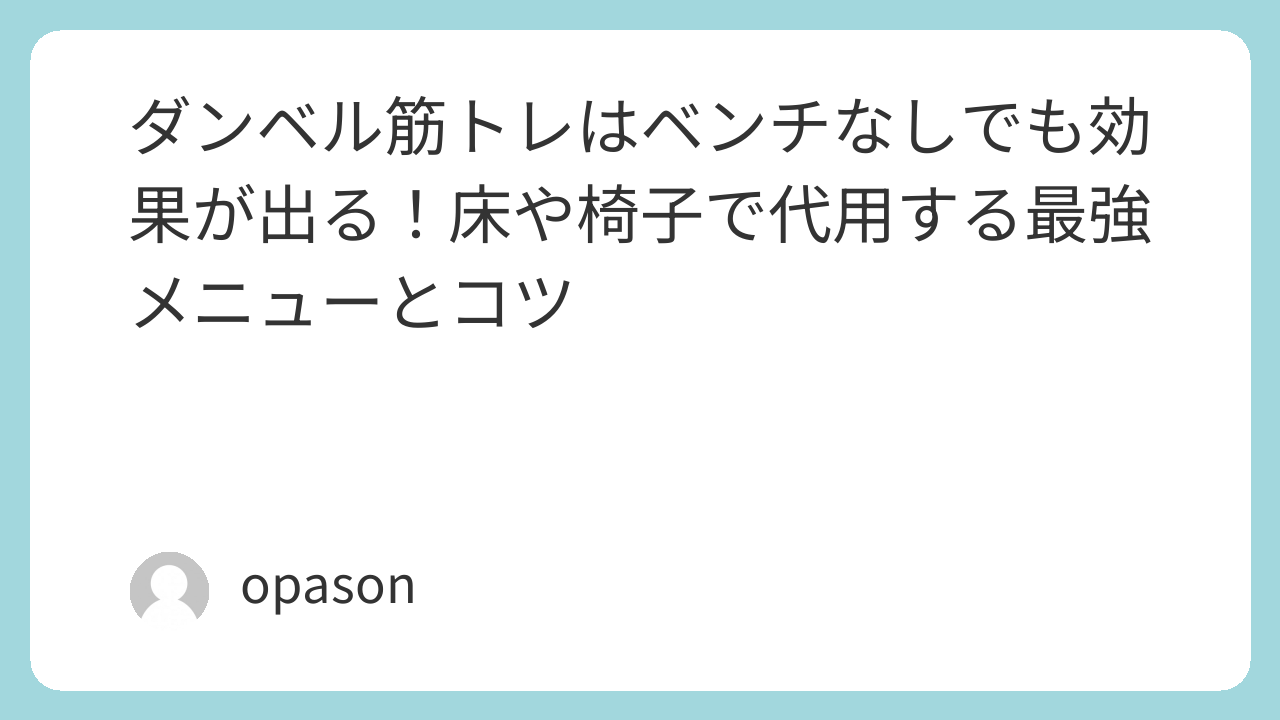 「ベンチがないからできない」と諦めるのはもったいないことです。たとえ床の上であっても、ダンベルが一つあれば、そこは立派なホームジムに変わります。
