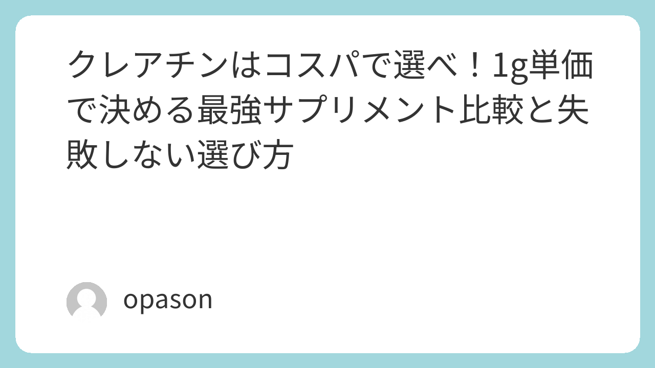 そんな悩みを持つ筋トレ初心者から中級者の方に向けて、今回は「クレアチンとコスパ」をテーマに、徹底的に深掘りしていきます。私自身、これまでに数多くのサプリメントを自腹で試してきましたが、クレアチンほど「賢く選べば支出を抑えられる」サプリはありません。