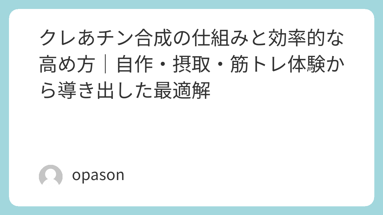 クレあチン合成の仕組みと効率的な高め方|自作・摂取・筋トレ体験から導き出した最適解