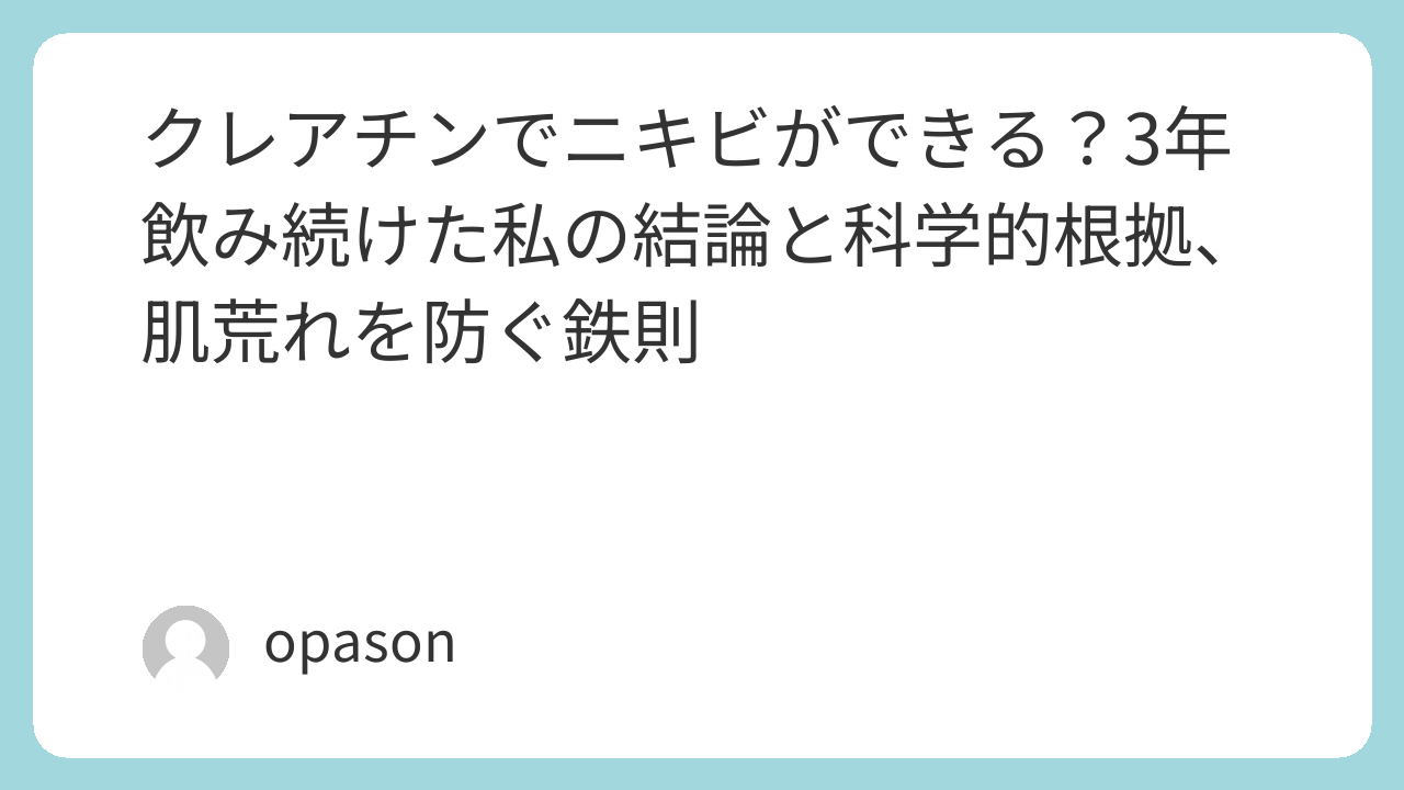 私自身、筋トレ歴5年の中で何度もクレアチンの摂取と中断を繰り返し、自分の肌を実験台にしてきました。結論から言うと、クレアチンそのものがニキビの直接的な原因になるという科学的根拠はありません。 しかし、摂取に伴う「ある変化」が間接的に引き金になる可能性は十分にあります。