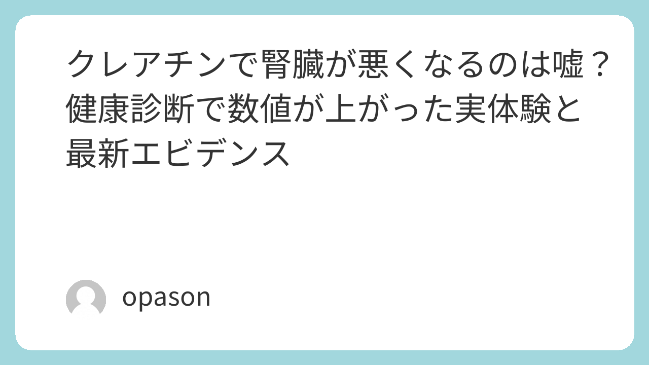 つまり、「腎臓が壊れて数値が上がった」のではなく、「サプリを飲んだから副産物が増えただけ」というケースがほとんどなのです。私も医師に「数値が高いね」と指摘された際、クレアチンを摂取している旨を伝えると「納得だね」と即座に解決しました。