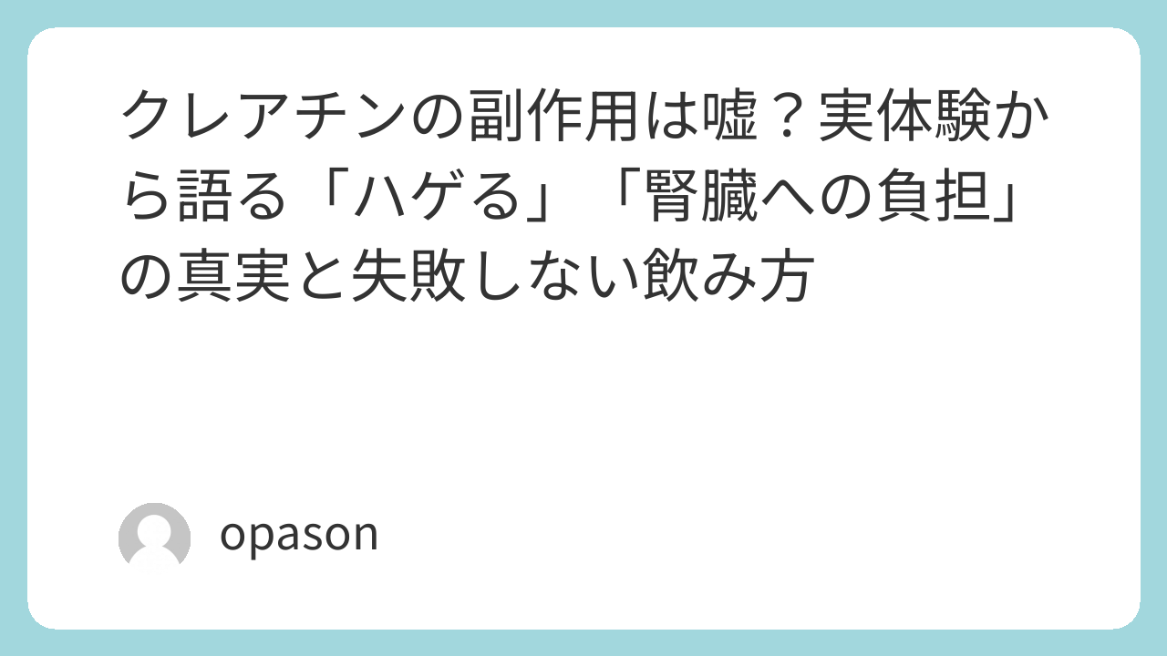 これは、2009年の特定の研究でジヒドロテストステロン(脱毛に関与するホルモン)の上昇が示唆されたことが発端です。しかし、その後の多くの研究で再現性は確認されておらず、国際スポーツ栄養学会も「根拠不十分」としています。私自身の経験でも、クレアピュアを使用した長期摂取で毛髪量に変化を感じたことは一度もありません。