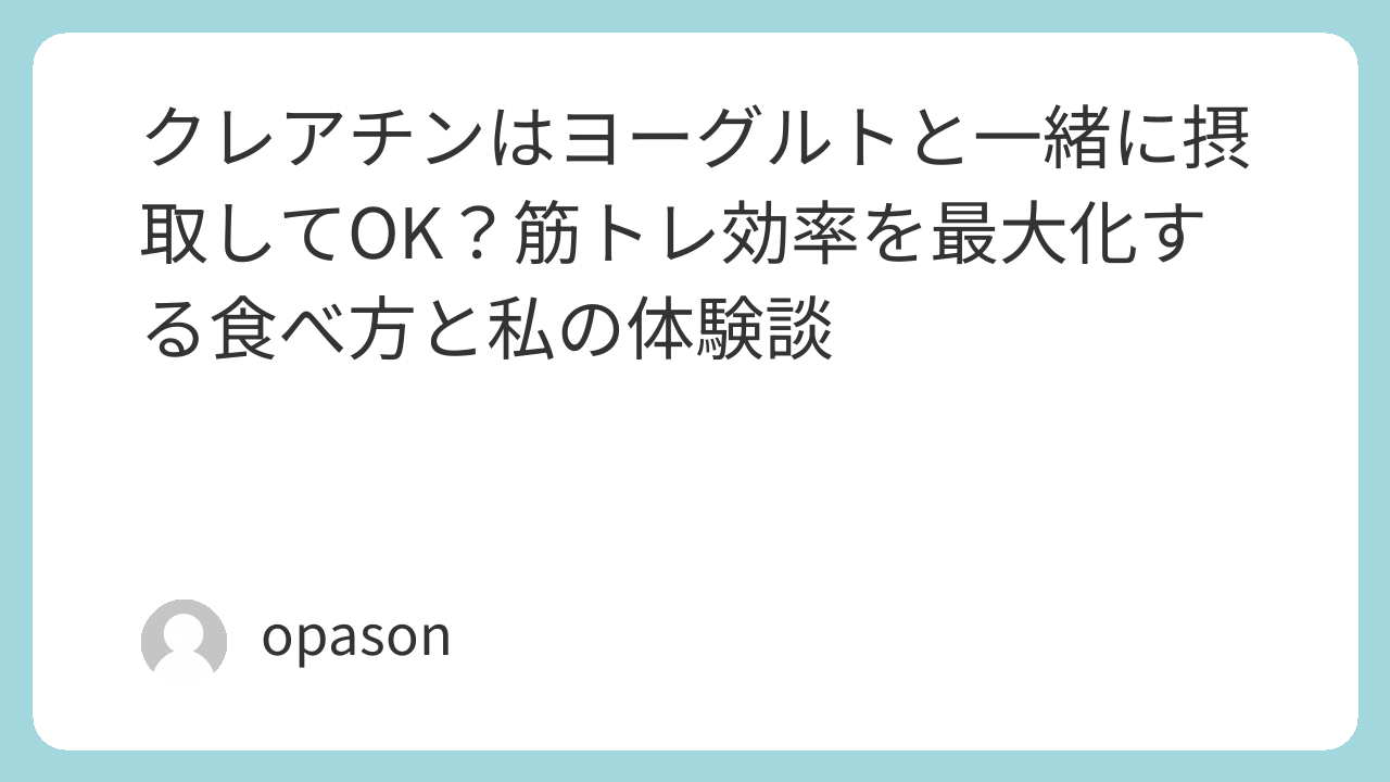- 水分補給を忘れずに: クレアチンは体内の水分を筋肉に引き込む性質があります。ヨーグルトだけでは水分が不足しがちなので、必ずコップ一杯の天然水を併せて飲むようにしてください。