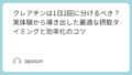 - ポストワークアウト: 筋トレ後のプロテインと一緒にクレアチンを流し込むのが、翌日の疲労感に最も差が出たタイミングでした。