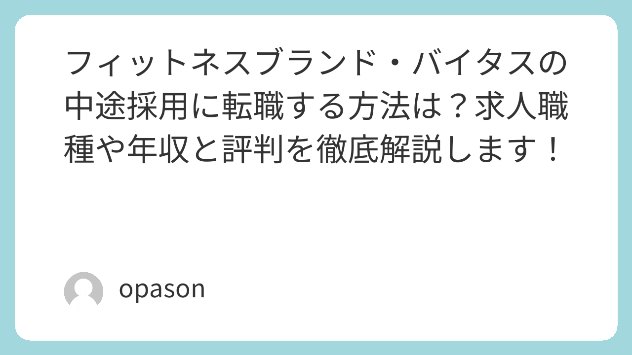 フィットネスブランド・バイタスの中途採用に転職する方法は?求人職種や年収と評判を徹底解説します!