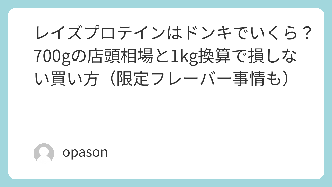 まとめとしてはシンプルです。ドンキのレイズ プロテインは、700gの店頭相場が税込3,000円台で推移することが多い一方、店舗差とタイミング差がある。だからこそ、棚札の税込表示を確認し、700gを1kg換算して納得できるなら買い。限定フレーバーや在庫の波も“楽しみ”として取り込めるなら、ドンキ購入はかなり相性がいい選択肢になります。