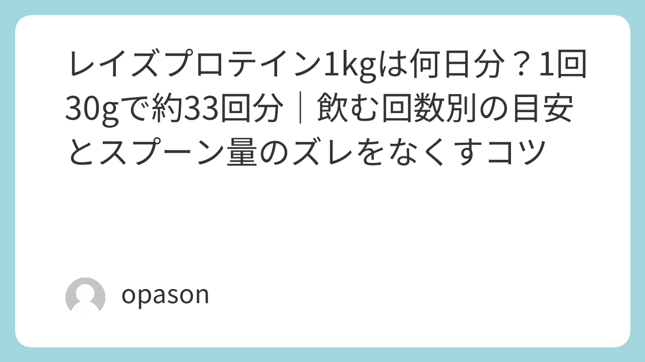 まず結論から。一般的な目安として「1回30g」で計算すると、1kg=1000gなので、1000g ÷ 30g = 約33回分になります。つまり、1日1回なら約33日、1日2回なら約16〜17日、1日3回なら約11日。ここまでが「検索で知りたい答え」のど真ん中です。さらに安心材料として、REYS レイズ ホエイ プロテイン 1kgは商品説明で“付属スプーン3杯で約30g”のように目安が示されていることが多く、計算の土台を作りやすいタイプです。