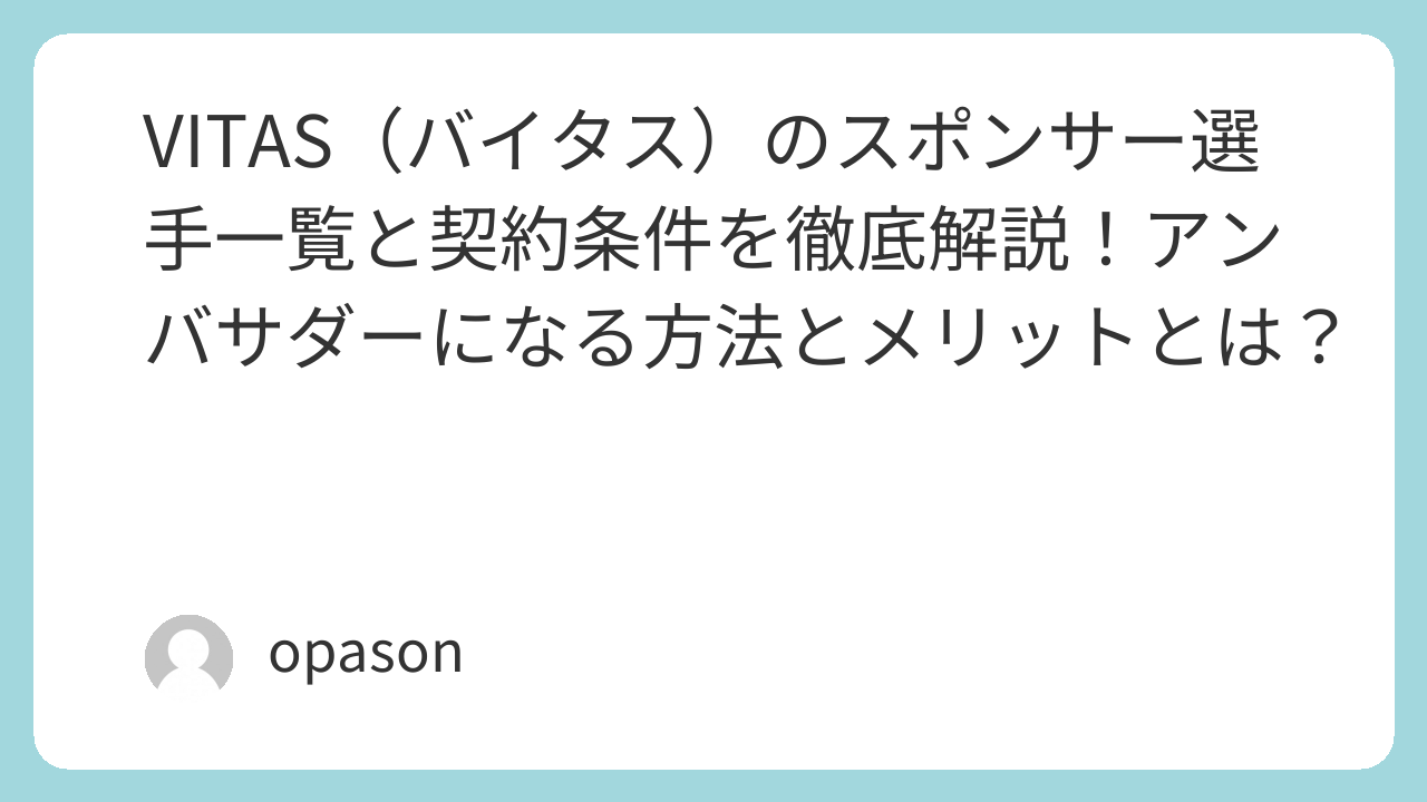 VITAS(バイタス)のスポンサー選手一覧と契約条件を徹底解説!アンバサダーになる方法とメリットとは?