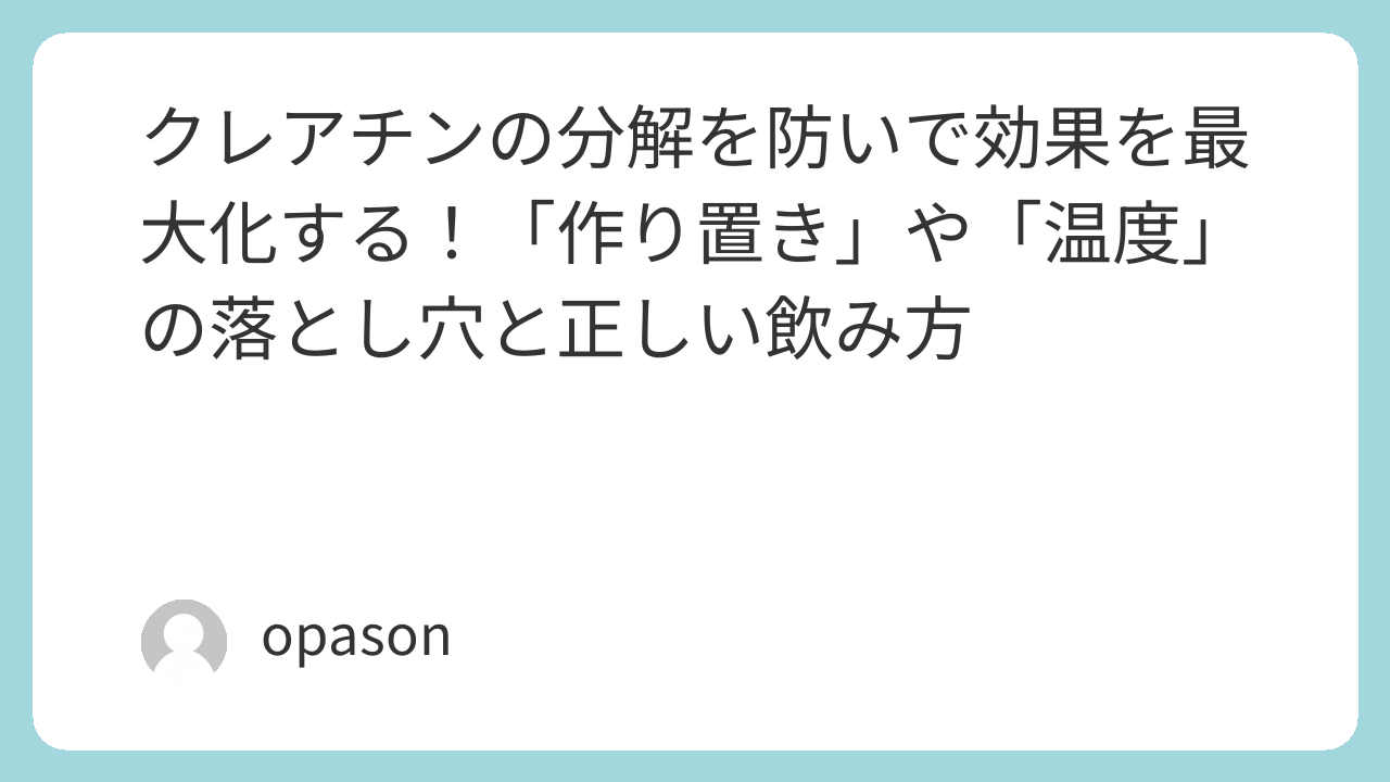 クレアチンは冷たい水には溶けにくいため、お湯を使う方も多いでしょう。確かに溶けやすくはなりますが、熱は分解スピードを劇的に早めます。もし温かい飲み物に入れるのであれば、完全に溶けきった直後に飲み干すのが鉄則です。