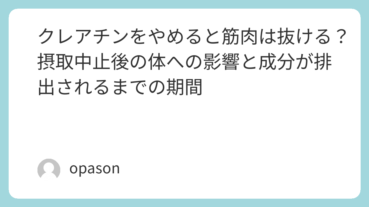 体内に蓄えられた クレアチン が、摂取前のベースライン(自然な状態)に戻るまでには、およそ4週間から6週間かかるとされています。 摂取を止めた瞬間にゼロになるわけではなく、日々の代謝によって「クレアチニン」という成分に変わり、尿として少しずつ体外へ排出されていくためです。