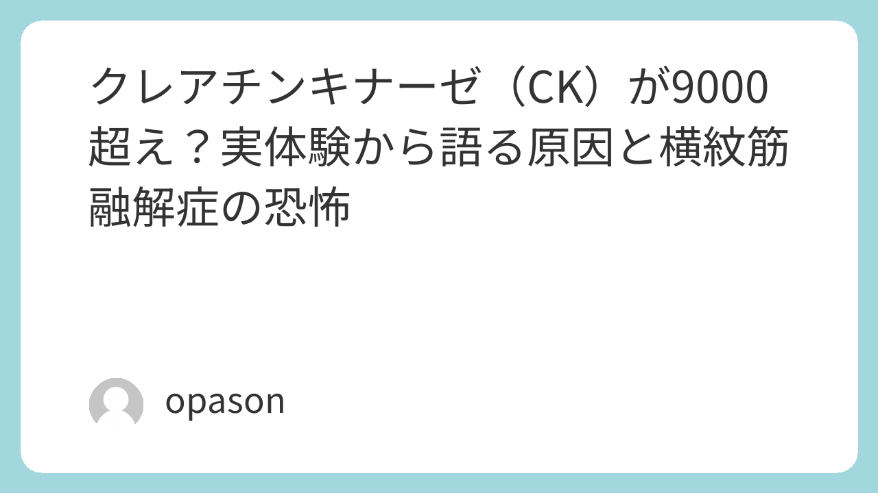 クレアチンキナーゼ(CKまたはCPK)は、主に筋肉細胞に含まれる酵素です。この数値が9000まで跳ね上がるということは、体中の筋肉が凄まじい勢いで破壊され、その中身が血液中に漏れ出していることを意味します。