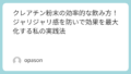 - ぬるま湯: 実はクレアチンは冷たい水に溶けにくい性質があります。シェイカーの底にジャリジャリと残ってしまう場合は、少しぬるめのお湯で溶かすと、吸収がスムーズになり胃腸へのストレスも軽減されます。