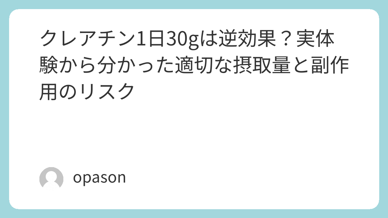 一般的に、クレアチンの効果を早く出すための「ローディング期」でも、推奨されるのは1日20g(5gを4回に分けて摂取)を1週間続ける方法です。30gという数字は、このローディング期の基準すら大幅に上回っています。