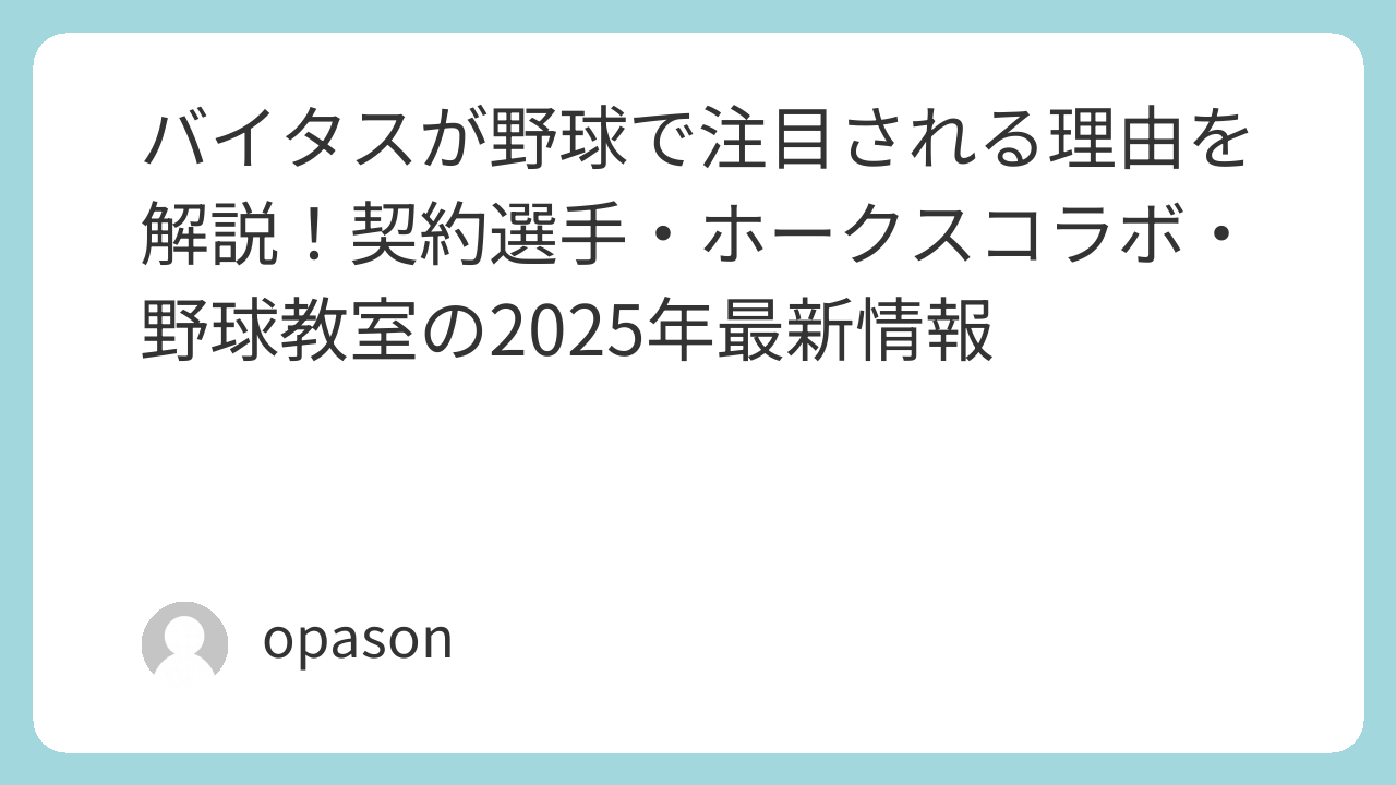 バイタス 野球」は、話題の出どころ(契約選手・ホークスコラボ・野球教室)を押さえたうえで、野球の生活に落とし込んだ“使いどころ”まで知りたい検索です。
