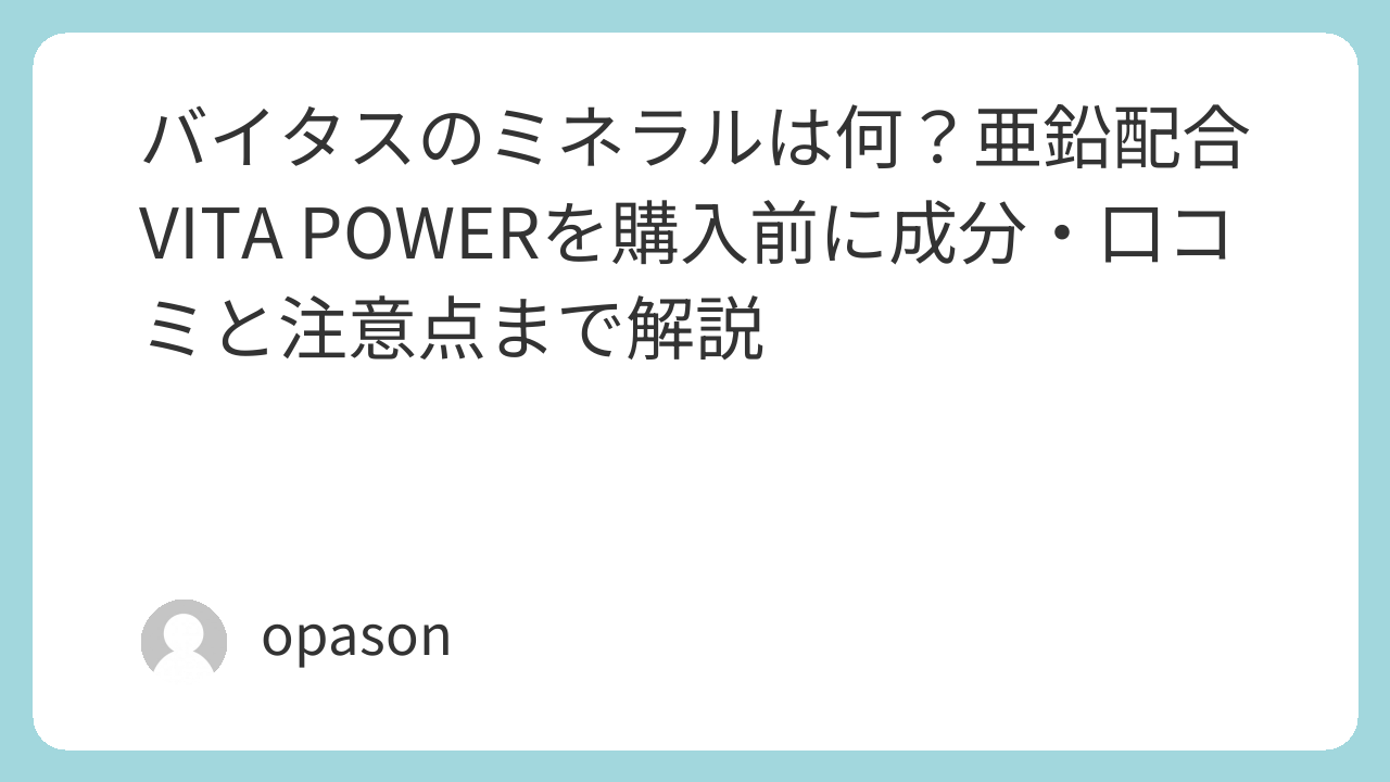 まとめ:バイタスの“ミネラル”は、まず亜鉛を軸に判断しよう