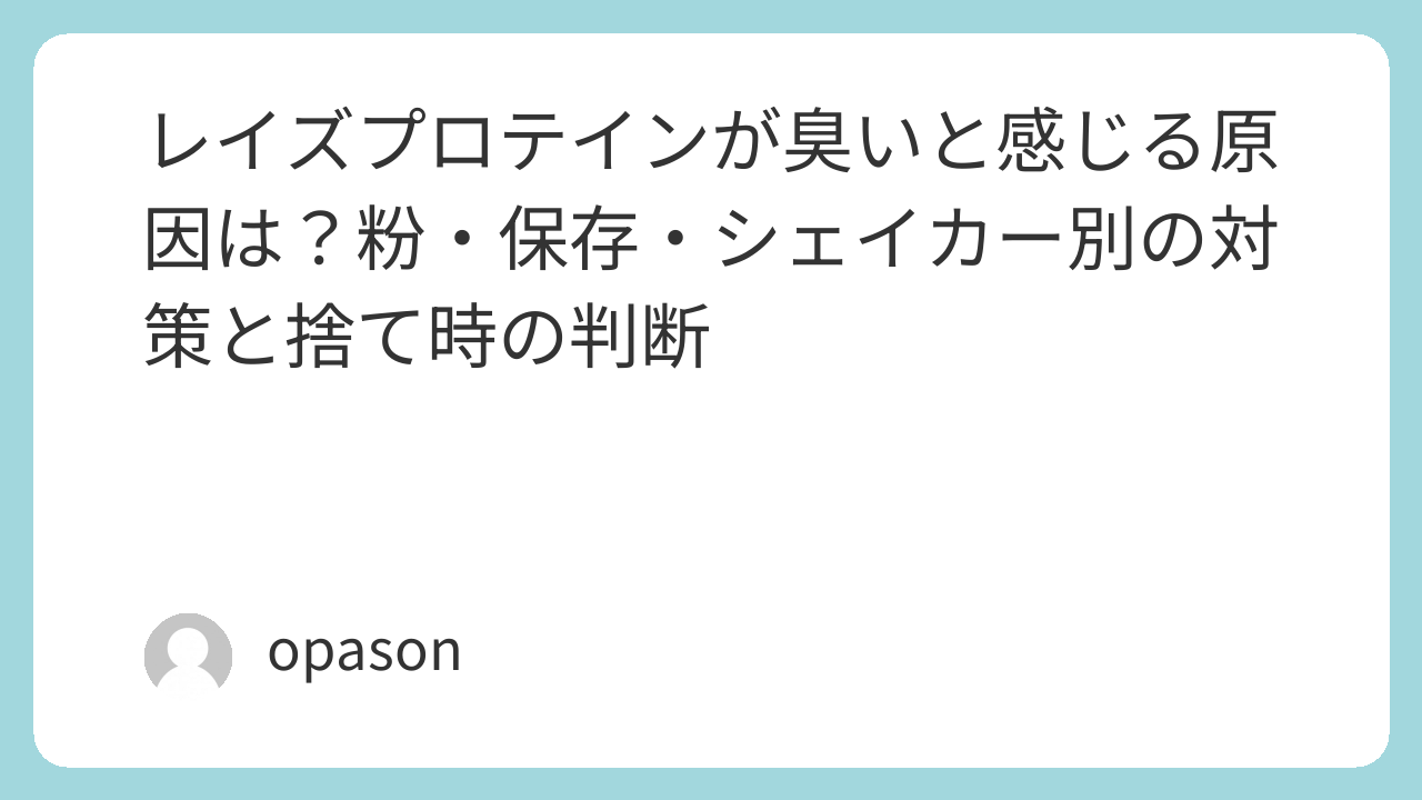 まず、臭いの出方を思い出してみてください。袋を開けた瞬間から「いつもと違う」「酸っぱい」「油っぽい」「湿気っぽい」と感じたのか。それとも、作っている最中は普通なのに、フタを開けた瞬間だけ「部活の水筒みたいな匂い」が立つのか。前者なら粉や保存の影響が濃厚で、後者ならシェイカー由来の可能性が高いです。