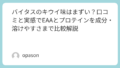 体感の差が出やすいのが、混ぜ方と飲むタイミングです。最初から推奨量をきっちり入れて、しかも急いで一気に飲むと、胃が弱い人はそれだけで負担が出ることがあります。逆に、最初の数日は少し薄めに作って様子を見ると、同じ商品でも印象が変わることがある。水で軽く試して問題がなければ、次に普段の割り方へ寄せていく。この“慣らし運転”は地味ですが、体験談ベースで見ると効果が出やすいポイントです。味の好み以前に体が受け付けないと続かないので、最初は「うまく飲めた日」を増やすのが正解になりやすいです。
