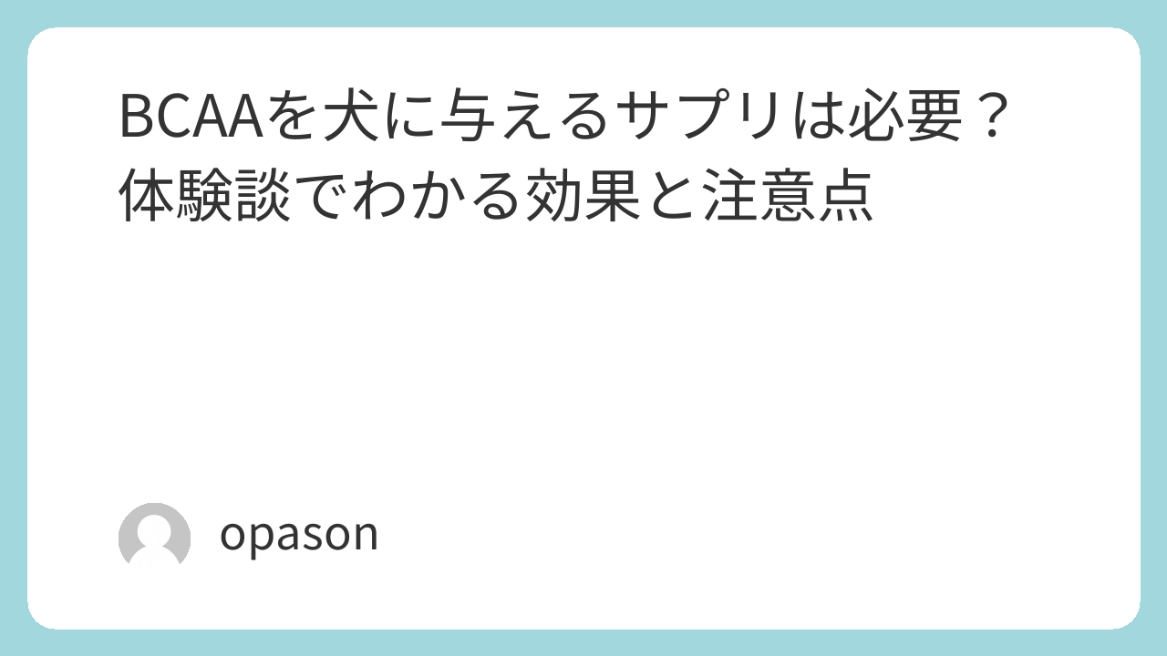BCAAを犬に与えるサプリは、誰にでも万能ではない。でも、シニア犬の筋力が気になってきたとき、運動量が多い犬のコンディションを整えたいとき、食事と生活を整えたうえでの“上積み”としては選択肢になる。