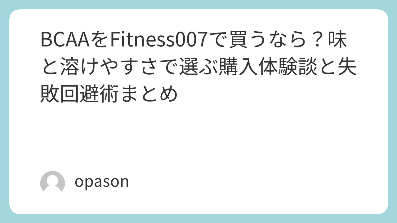 「bcaa fitness 007」で検索する人が知りたいのは、だいたいこの3つに集約されます。
