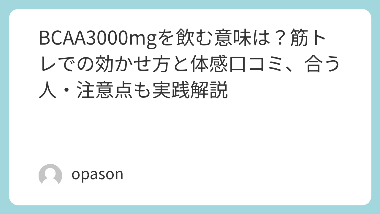 BCAA3000mgは、“魔法の粉”ではありません。でも、使いどころを間違えなければ、トレの継続を支える小さな追い風になり得ます。自分の目的(当日粘りたいのか、翌日ラクになりたいのか)を決めて、同じ作法で試す。ここまでやると、検索して終わりではなく、ちゃんと自分の答えにたどり着けます。