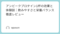 アンビーク プロテイン 1kgは、栄養バランスが取れたホエイプロテインで、飲みやすさや豊富なフレーバーの選択肢が魅力です。体験者の多くが「続けやすい」「飲みやすい」と評価しており、忙しい日常の中で手軽に栄養を摂りたい人にはピッタリのアイテムです。実際に試してみて、その効果を実感することができました。